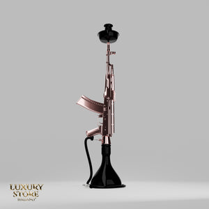 Questo narghilรจ si distingue per il suo design audace, ispirato alla forma dellโ€™AK-47, con una colonna in metallo nera che conferisce un aspetto unico e potente. La sua presenza non passa inosservata, trasformando ogni ambiente in un luogo dal carattere deciso.