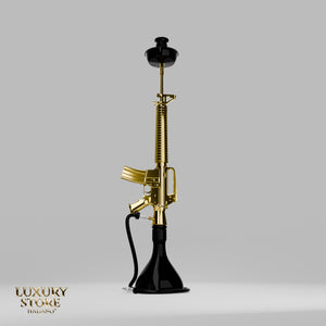 Questo narghilรจ si distingue per il suo design audace, ispirato alla forma dellโ€™AK-47, con una colonna in metallo rosa che conferisce un aspetto unico e potente. La sua presenza non passa inosservata, trasformando ogni ambiente in un luogo dal carattere deciso.
