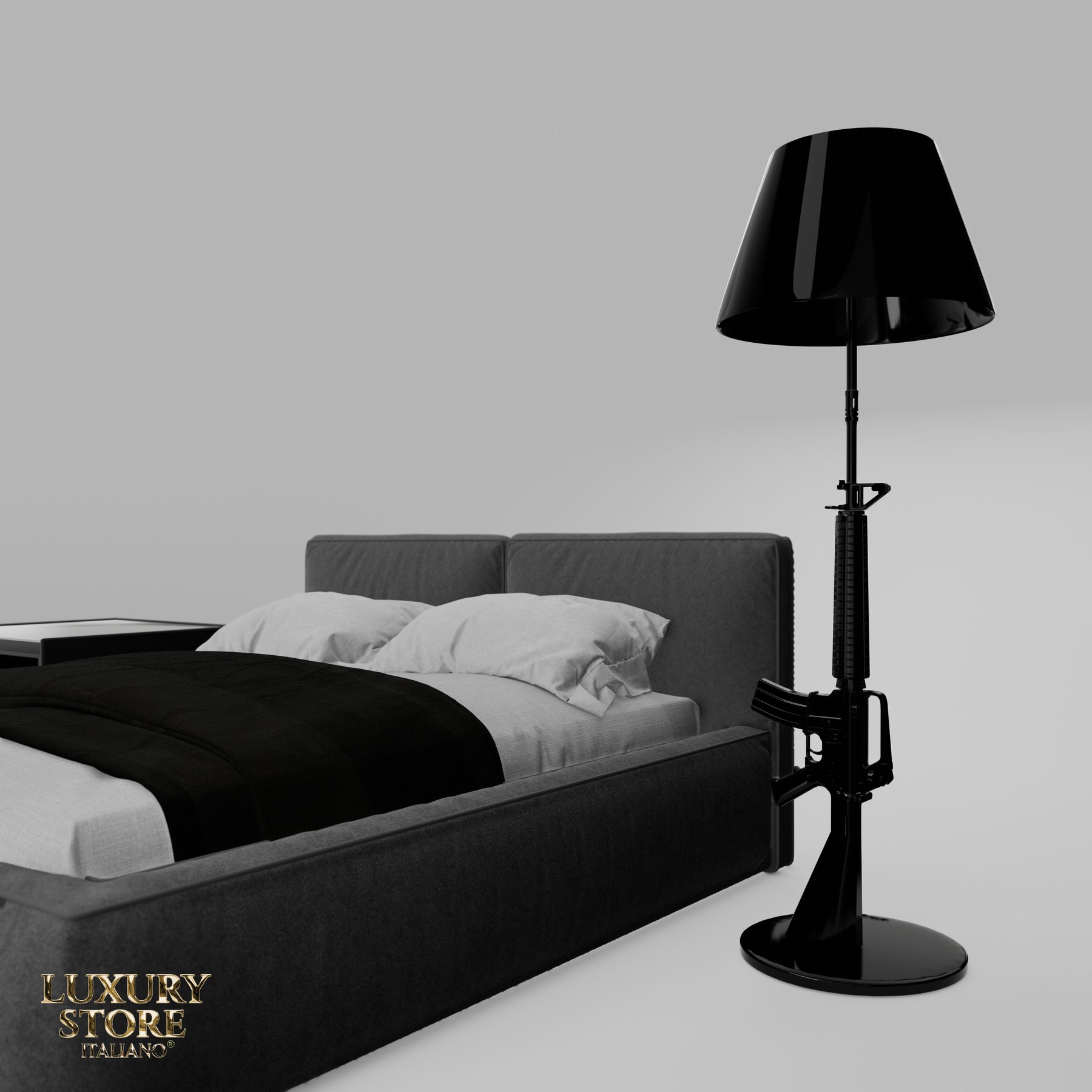 Porta un tocco di provocazione sofisticata nei tuoi ambienti, la lampada รจย un pezzo dโ€™arredo che unisce arte, design e carattere. Alta 170 cm con una base di 40 cm, questa lampada scultorea riproduce con sorprendente realismo la sagoma di un fucile M16, trasformandola in un oggetto di luce dal forte impatto estetico.